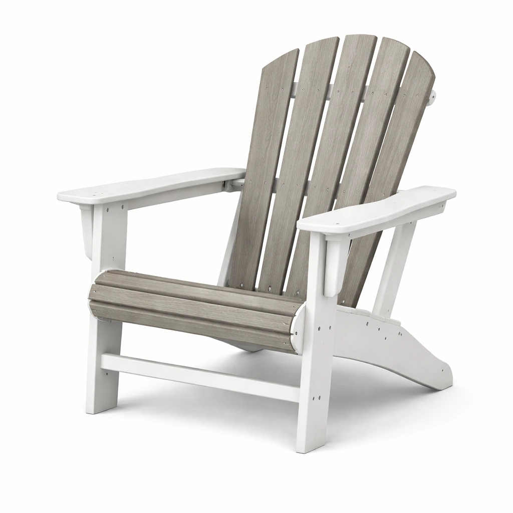Esta silla Adirondack para exterior está construida con plástico HDPE reciclado, resistente a la intemperie. Sus dimensiones son: longitud 90 cm, anchura 75 cm, altura 95 cm, con un peso de 14 kg. El diseño ergonómico soporta hasta 140 kg.