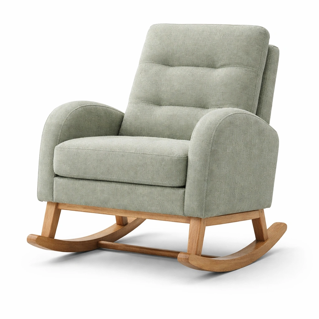 Este sillón mecedora está diseñado para ofrecer comodidad. Su estructura de roble proporciona estabilidad y durabilidad.