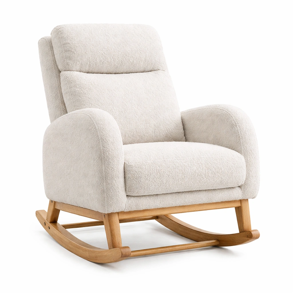 Este sillón mecedora está diseñado con una estructura de madera maciza, proporcionando estabilidad y durabilidad.